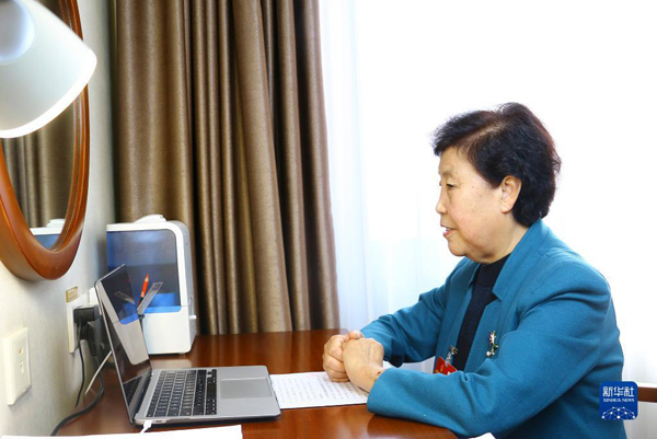 3月8日,全國人大代表、山西省昔陽縣大寨鎮(zhèn)大寨村黨總支書記郭鳳蓮在駐地與農(nóng)業(yè)農(nóng)村部工作人員視頻連線。新華社記者 胡喆 攝