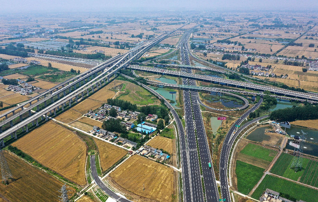 京滬高速公路擴建工程楚州樞紐段現場(6月6日攝,無人機照片)。