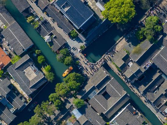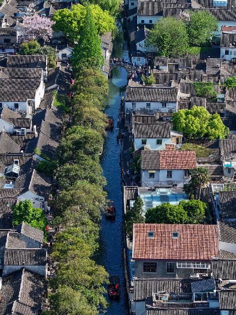 這是4月18日拍攝的蘇州平江歷史文化街區(無人機照片)。新華社記者李博 攝
