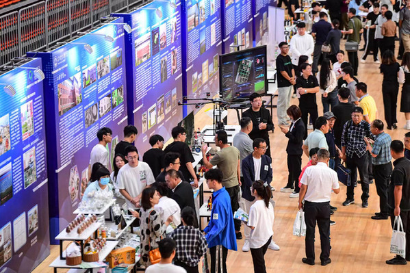 圖為在沈陽市沈陽農業大學禾豐體育館舉辦的遼寧省高??萍汲晒D化對接大會現場(2023年9月攝)。新華社發