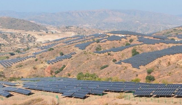 在少雨的冬季,位于云南省元謀縣的班果光伏電站生機(jī)勃勃。