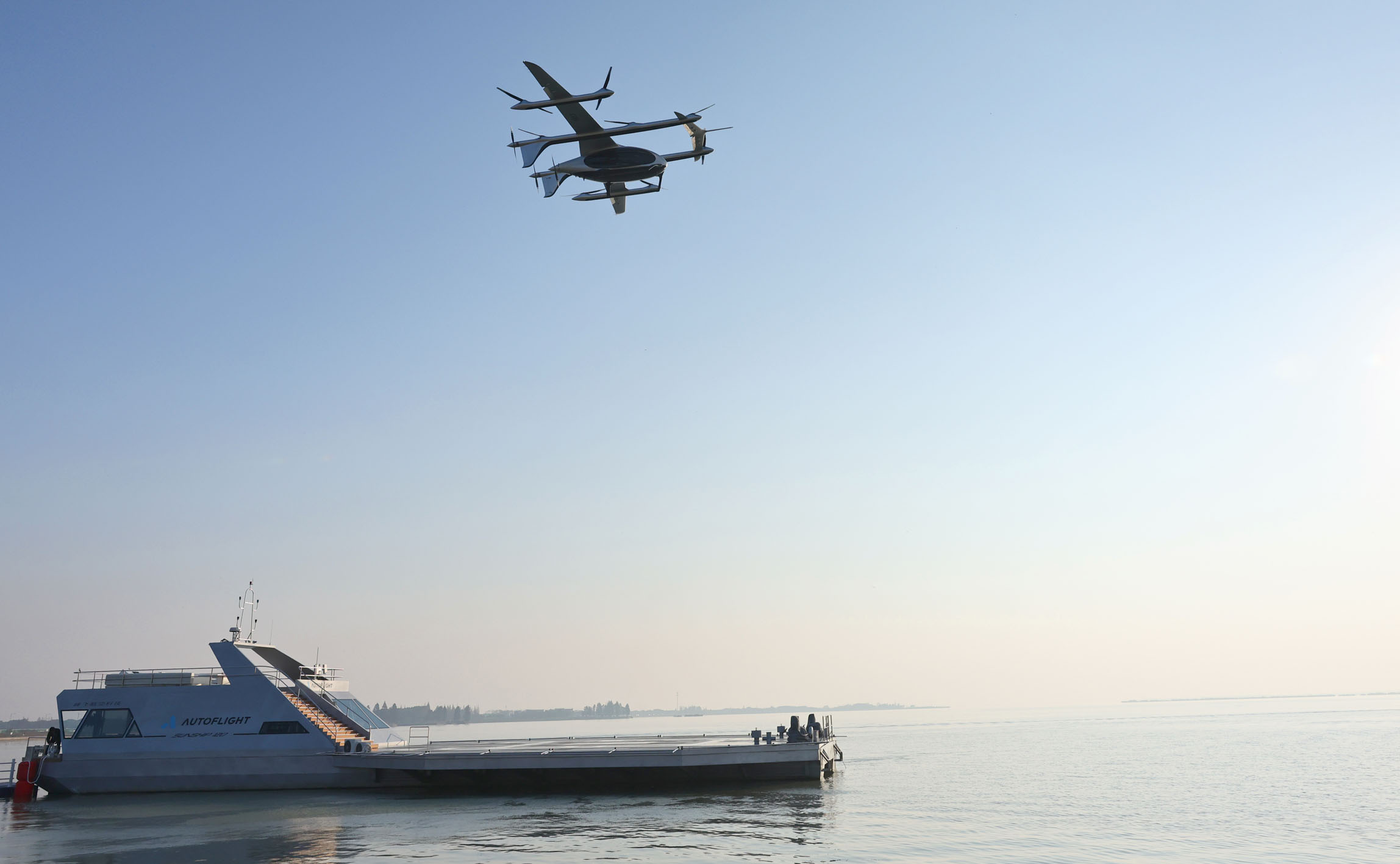 11月22日,一架電動垂直起降飛行器從零碳水上機場起飛。新華社記者 方喆 攝