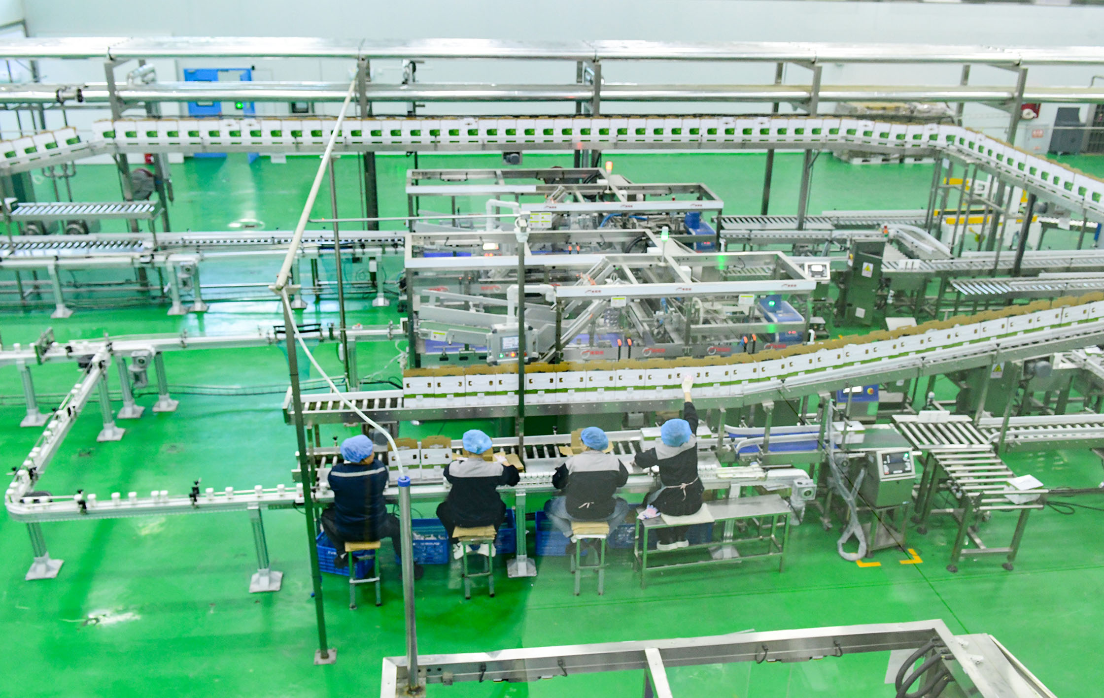 在巴彥淖爾市旭一牧業(yè)有限公司,工人們?cè)谝簯B(tài)奶包裝車間作業(yè)。康文魁 攝