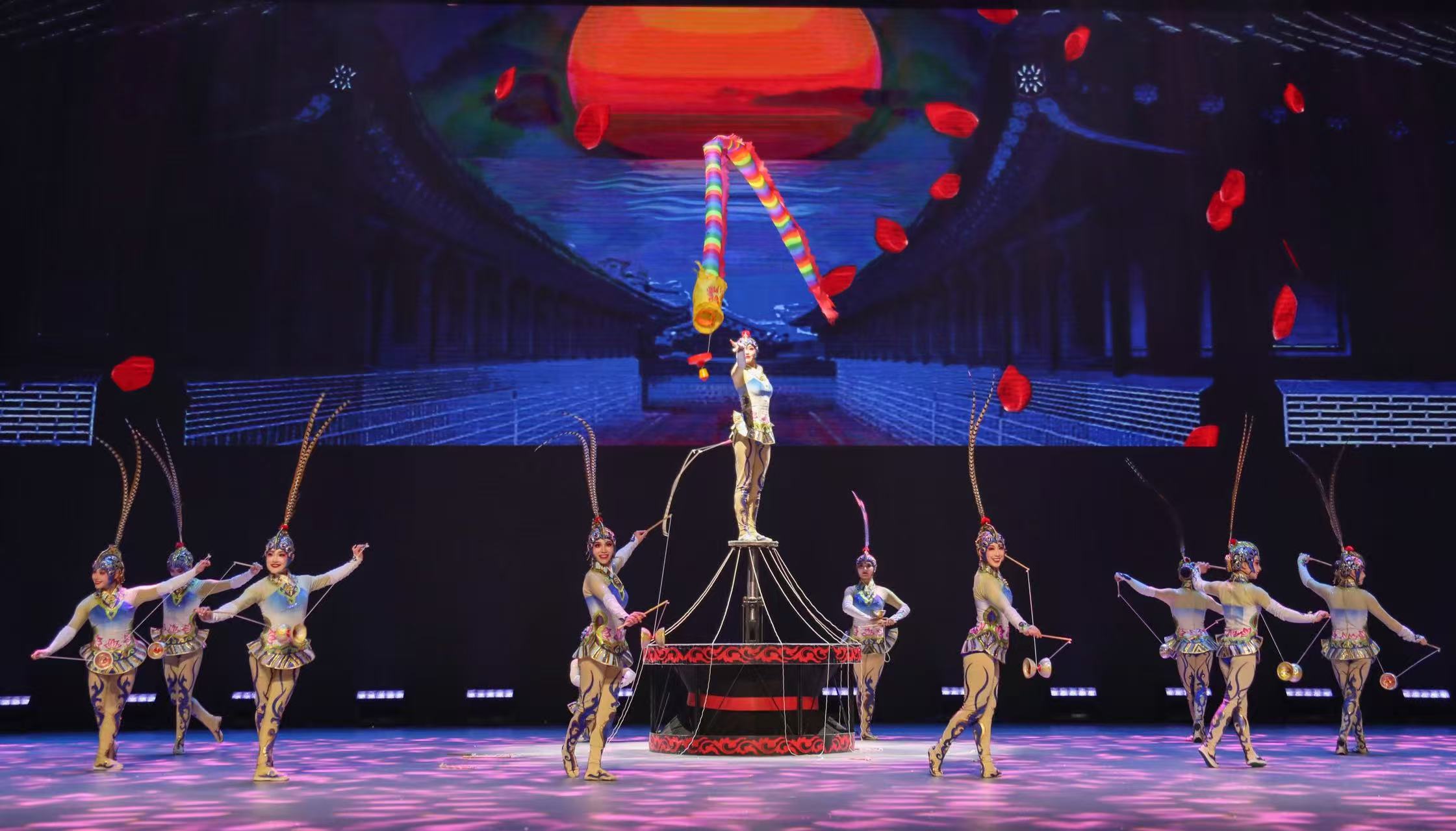 演出盡顯中華優(yōu)秀傳統(tǒng)文化之美。《龍躍神州——中幡》集“驚險奇美”于一身,融入京劇元素、古典舞與武術(shù)的動作特點,騰挪翻轉(zhuǎn)間將古老中幡藝術(shù)的雄渾與新時代的昂揚氣象徐徐鋪展。《梁祝——肩上芭蕾》以梁祝為故事基線,女演員在男演員“3厘米見方”的肩上和頭上展翅起舞,完成足尖站肩等一系列高難度動作。《俏花旦——集體空竹》通過服飾、音樂、動作、身段等京劇元素在節(jié)目中的大膽成功運用,文活武演,體現(xiàn)了國粹的大氣、典雅、華麗,展現(xiàn)了精雕細琢的京味風情。《大魚——吊環(huán)》以高空吊環(huán)為載體,結(jié)合流行樂曲《大魚》,演員宛如靈動的魚兒,輕盈地穿梭于環(huán)間,將觀眾帶入充滿詩意與浪漫的海洋世界。