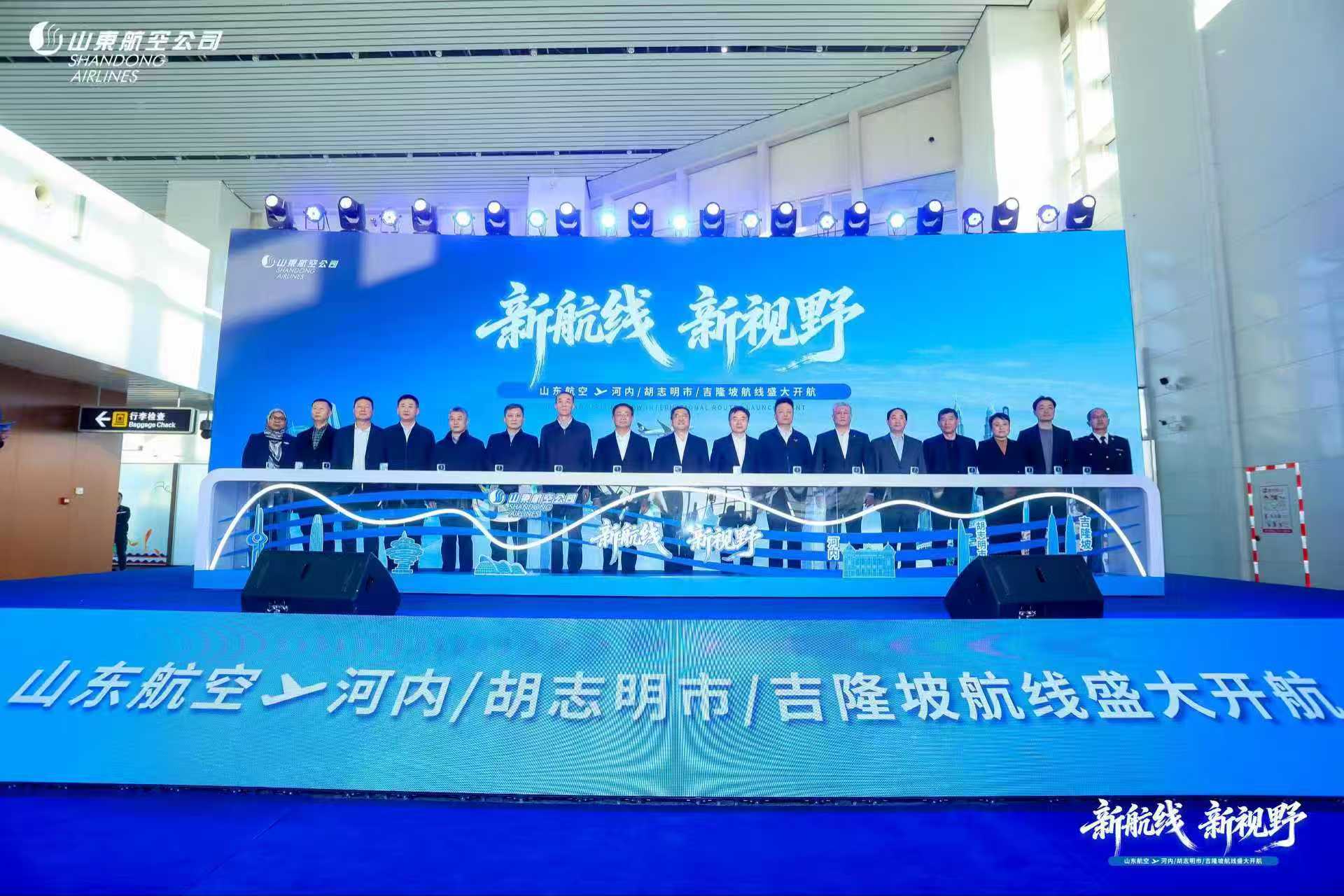 1月15日,山東航空集團在濟南遙墻國際機場舉辦“新航線·新視野”國際航線開航發(fā)布會:正式宣布開通濟南?河內(nèi)、濟南?胡志明市、濟南?吉隆坡、青島?胡志明市、青島?河內(nèi)航線五條東南亞直達航線。山東省交通運輸廳、商務(wù)廳和文旅廳等相關(guān)部門,民航監(jiān)管機構(gòu)、空管單位、口岸聯(lián)檢機構(gòu)及機場、航司代表近百人出席活動。
