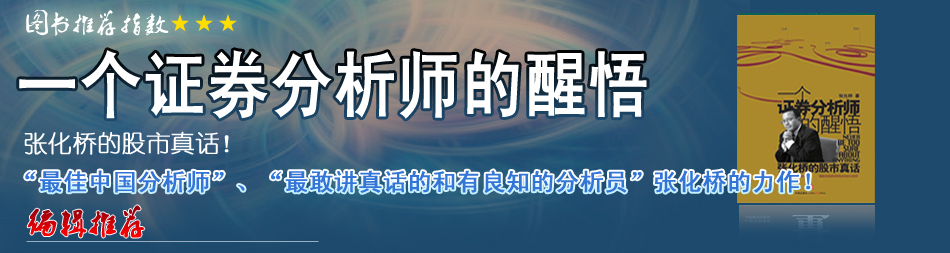 | 在時下官話、套話、廢話和謊話滿天飛的一片浮躁聲中,張化橋“假話全不說,真話盡量說”的為人原則不能不說是彌足珍貴。他的《一個證券分析師的醒悟———張化橋的股市真話》因此也凸現出了別樣的價值…[詳細] |
