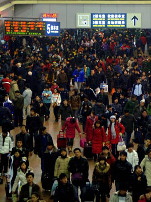 1月17日,旅客在北京西站準備乘車。新春佳節日益臨近,鐵路春運客流量持續走高,全國各地鐵路部門也紛紛采取措施應對。